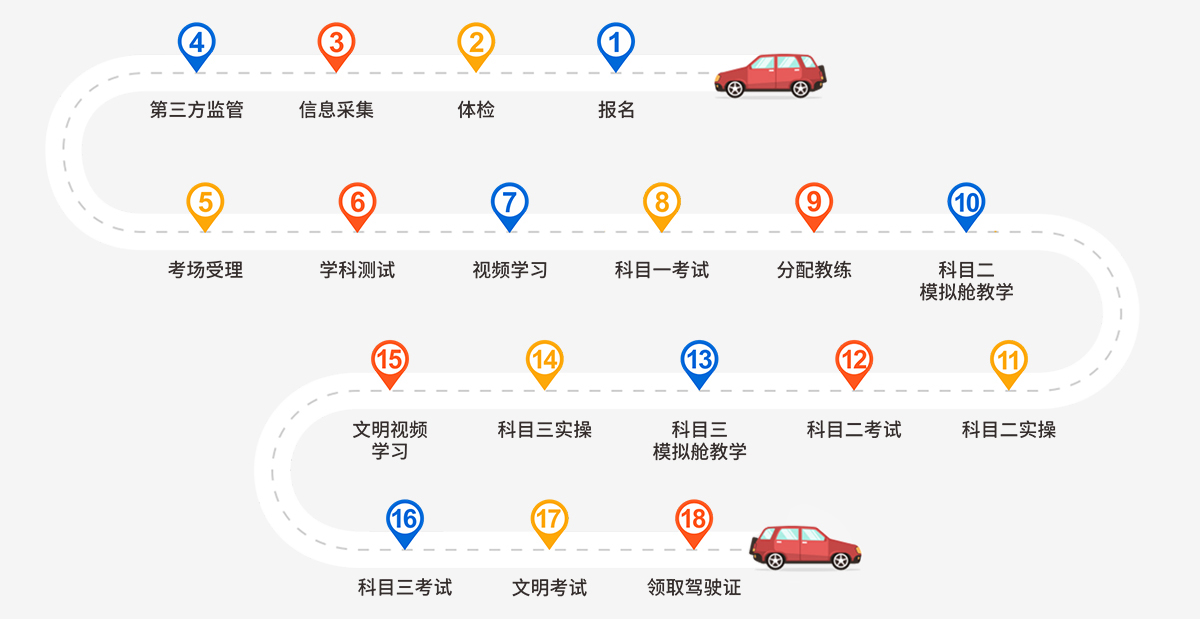 3、办增驾中客/货或大客/货者须携带身份证原件和机动车驾驶证原件(学费包含体检费、拍照费,科目一、四课时平台费);
